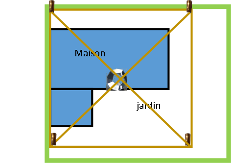 – avoir un plan du lieu et tracer la « base symbolique, carrée de la pyramide », un carré, ainsi que les diagonales, comme ci-contre.